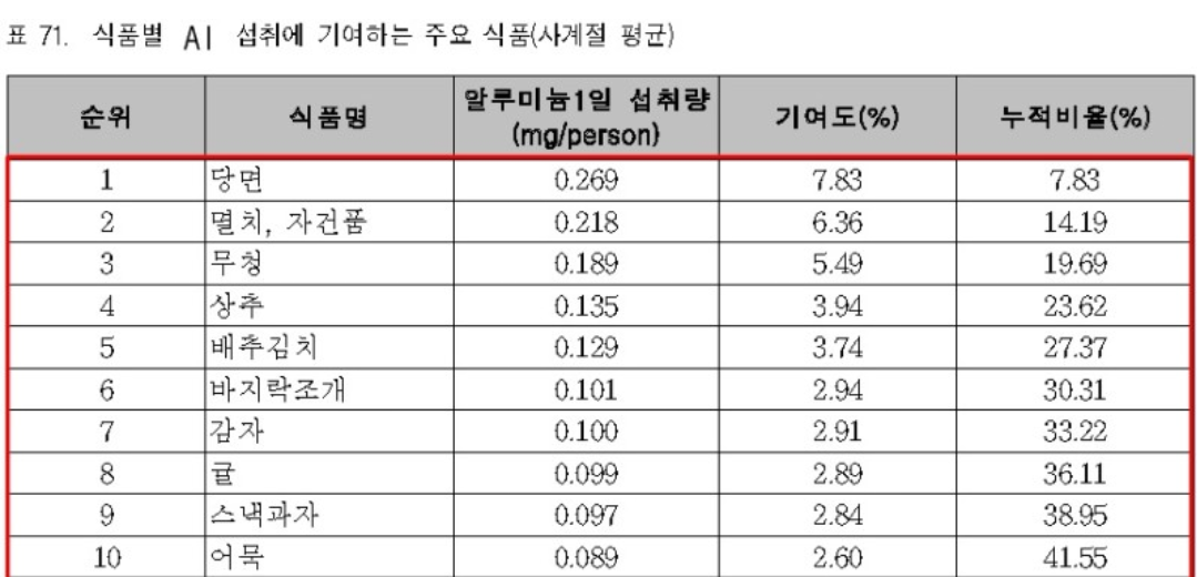 알루미늄 섭취 기여 식품 1위가 당면이라고 합니다.
