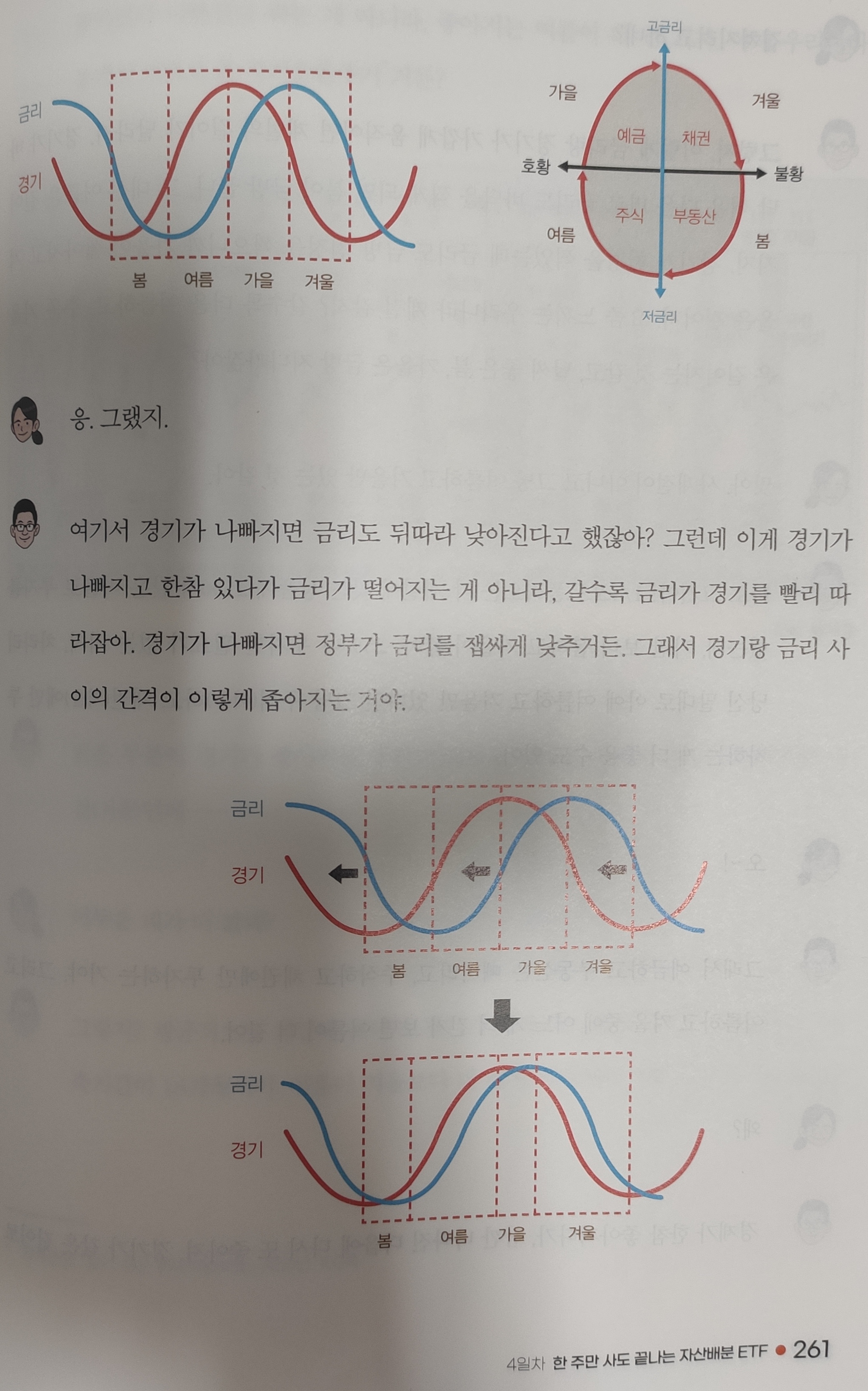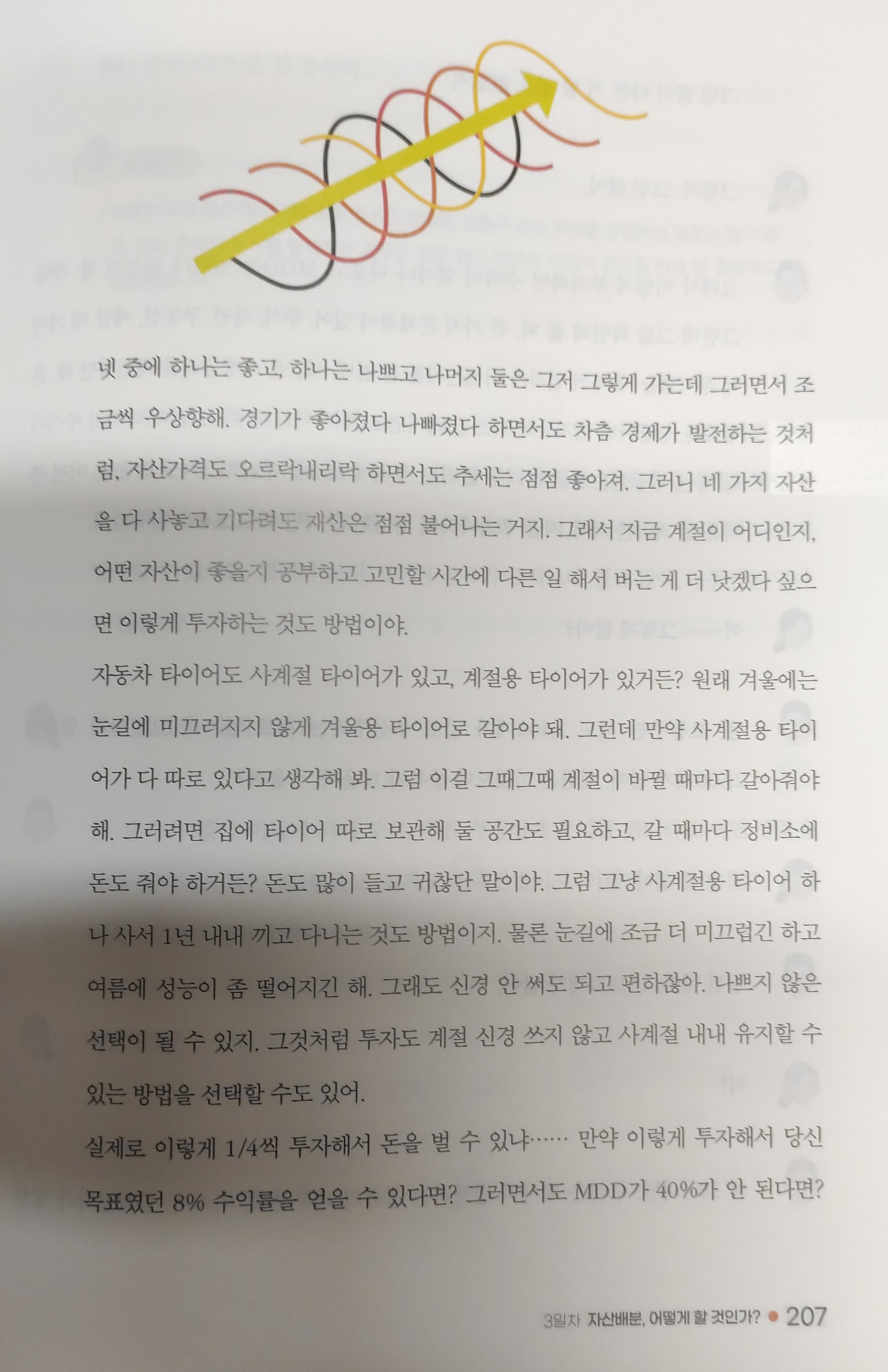 앞서 주식 수익률은 기하평균보다 산술평균이 어울린다며 분산 장기투자의 필요성을 설명했습니다. 나머지 페이지에서는 시골의사 박경철이 변형한 “코스톨라니의 달걀”을 말하면서 자산의 많은 부분을 안정적인 ETF투자의 필요성에 대해 말합니다.