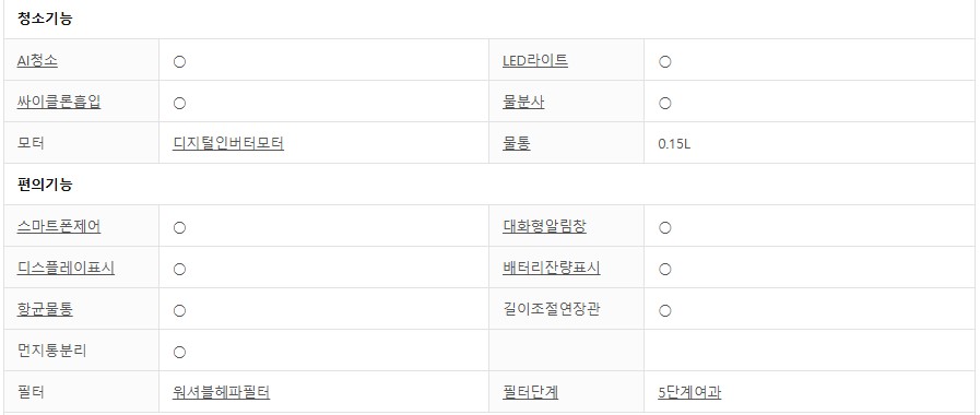 요즘 무선청소기들은 물걸래 청소 기능은 기본으로 제공되니까 다른건 볼 필요가 없는 것 같고,