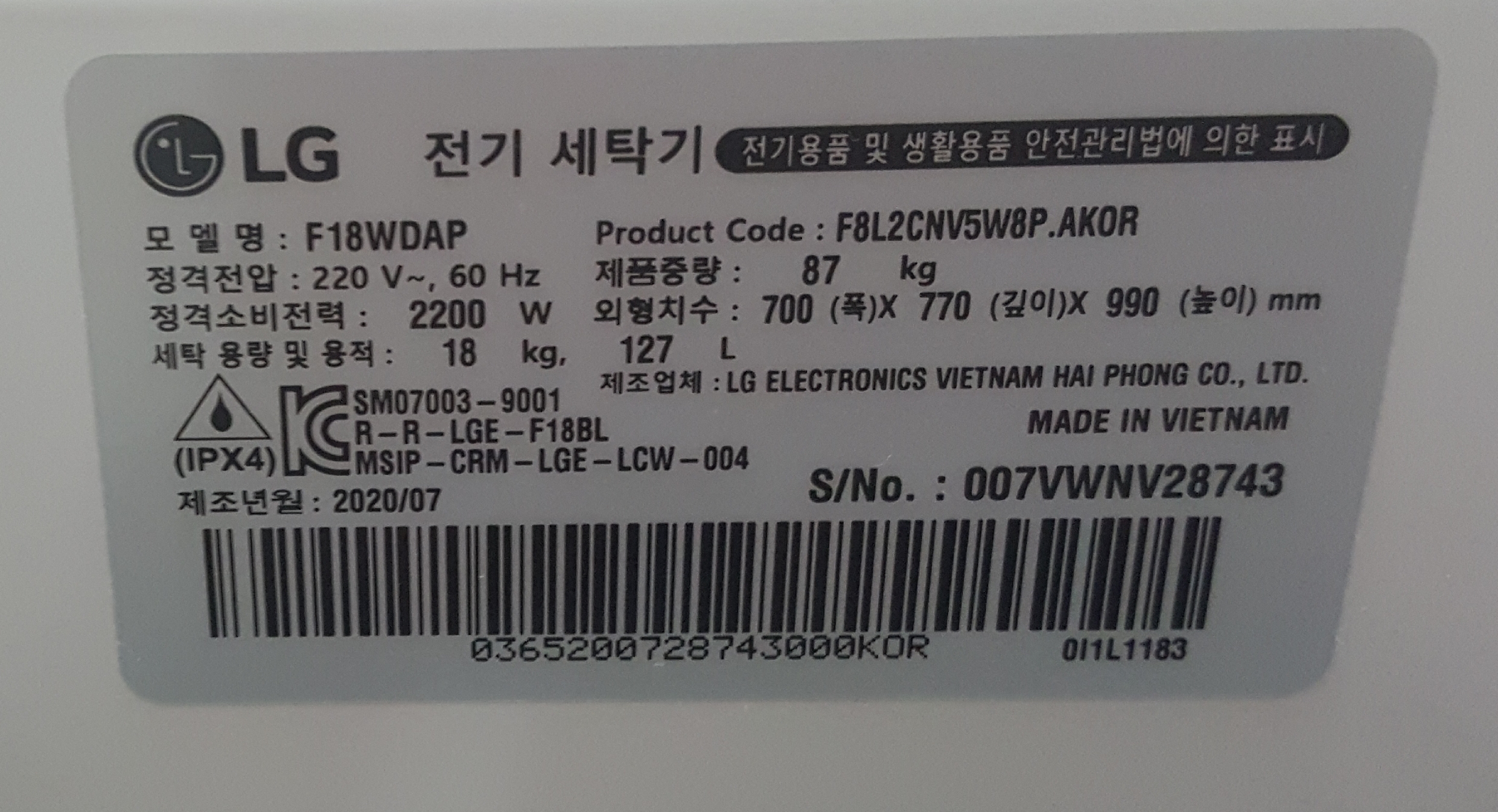 이런 이유로 LG 드럼세탁기, 모델명: F18 WDAP로 선택되었습니다. 하하^^; 나름 합리적으로 선택했다고 생각하는데 제 선택과정이 도움이 되셨을까요?